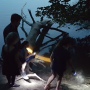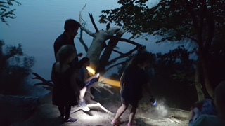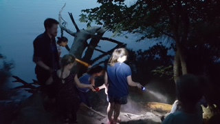 Am 23.06.2017 trafen wir, die Kinder und Eltern, uns zu einem Ausflug an den Laacher See. Über das Landesforstamt Koblenz hatte Anja Emeka für uns den diesjährigen Gruppenausflug organisiert. Abends am Parkplatz angekommen begrüßte uns Claire Walenta vom Landesforstamt. Von dort machten wir uns auf steilem Weg abwärts Richtung Laacher See. Auf geschlungenem Pfad gelangten wir ans Ufer des Sees, wo wir erstmal picknickten und unser Mitgebrachtes verzehrten. Bei gemütlicher Plauscherei saßen wir, auf die Dämmerung wartend, zusammen. Zwischendurch erhielten wir von Claire und ihren zwei Mitstreitern lehrreiche Informationen zum Thema Glühwürmchen, auch wurden die Kinder zu verschiedenen Spielen animiert. Als endlich die Dunkelheit einbrach, machten wir uns langsam auf den Rückweg durch den Wald am Ufergelände des Sees. Bei ausgeschalteten Taschenlampen konnten wir zahlreich die hell leuchtenden Glühwürmchen im Dickicht sehen. Deutlich war der Unterschied zwischen den intensiv strahlenden Weibchen zu ihren Männchen erkennbar. Solch eine Vielzahl an Glühwürmchen hätten wir nicht erwartet. Nach einigen Gehminuten und stets erneuten Ausrufen über neu gefundene Weibchen, versteckt unter Blättern, durch ihr helles Licht enttarnt, gelangten wir wieder zu unserem Ausgangspunkt. Nachdem wir uns den Berg wieder hochgekämpft hatten, waren zu später Stunde und dem ereignisreichen Nachterlebnis dann viele der Kinder und Eltern müde, so dass gemeinsam entschieden wurde auf den Aufstieg zum Lydiaturm zu verzichten. Von Claire erhielten die Kinder noch Informationsmaterial rund um das Glühwürmchen, sowie Malbuch, Stifte und Waldlehrbuch. Als Dank für dieses tolle Angebot des Landesforstamtes überreichten wir eine Spende in Höhe von 100 Euro an das Projekt 'Grün Rockt 2017'. Dieses einzigartige Naturschauspiel in der Johannisnacht am Laacher See werden wir so schnell nicht vergessen.